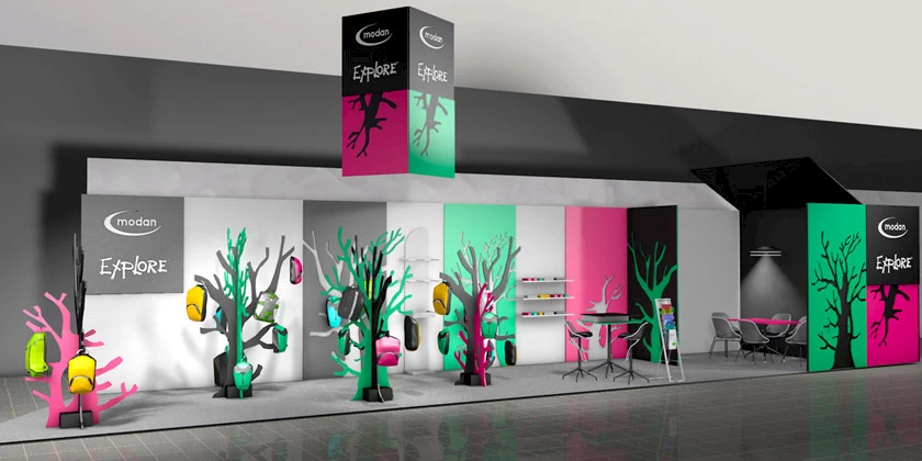 Návrh veletržního stánku pro výrobce sportovních batohů