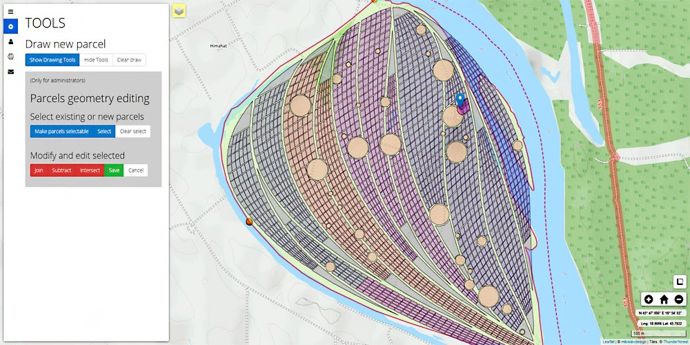 Mapová aplikace se zobrazením katastrálního členění území Liberlandu, převod vstupních geodetických dat do geoJSON formátu.