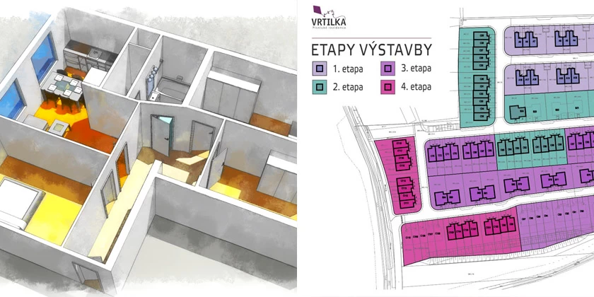 Grafické zpracování zastavovací situace a bytových půdorysů, správa a úpravy webu a interaktivní zastavovací plán pro developerský projekt.