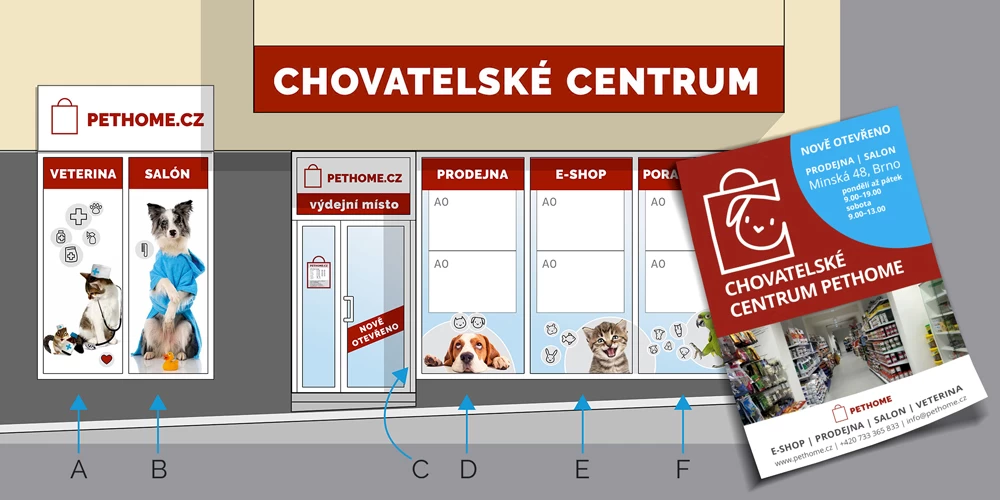 Pethome výkladní skříně a leták
