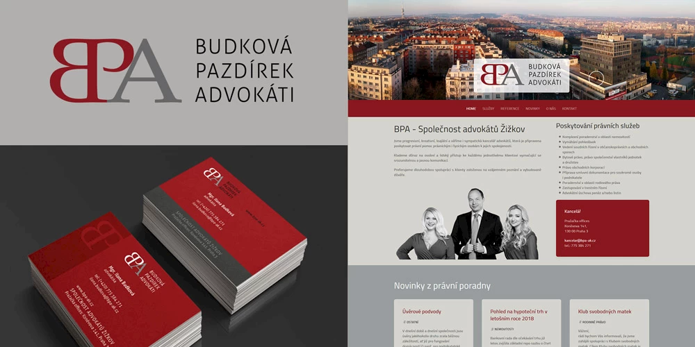 Logotyp, hlavičkové papíry, vizitky a webová prezentace pro BPA - Společnost advokátů Žižkov